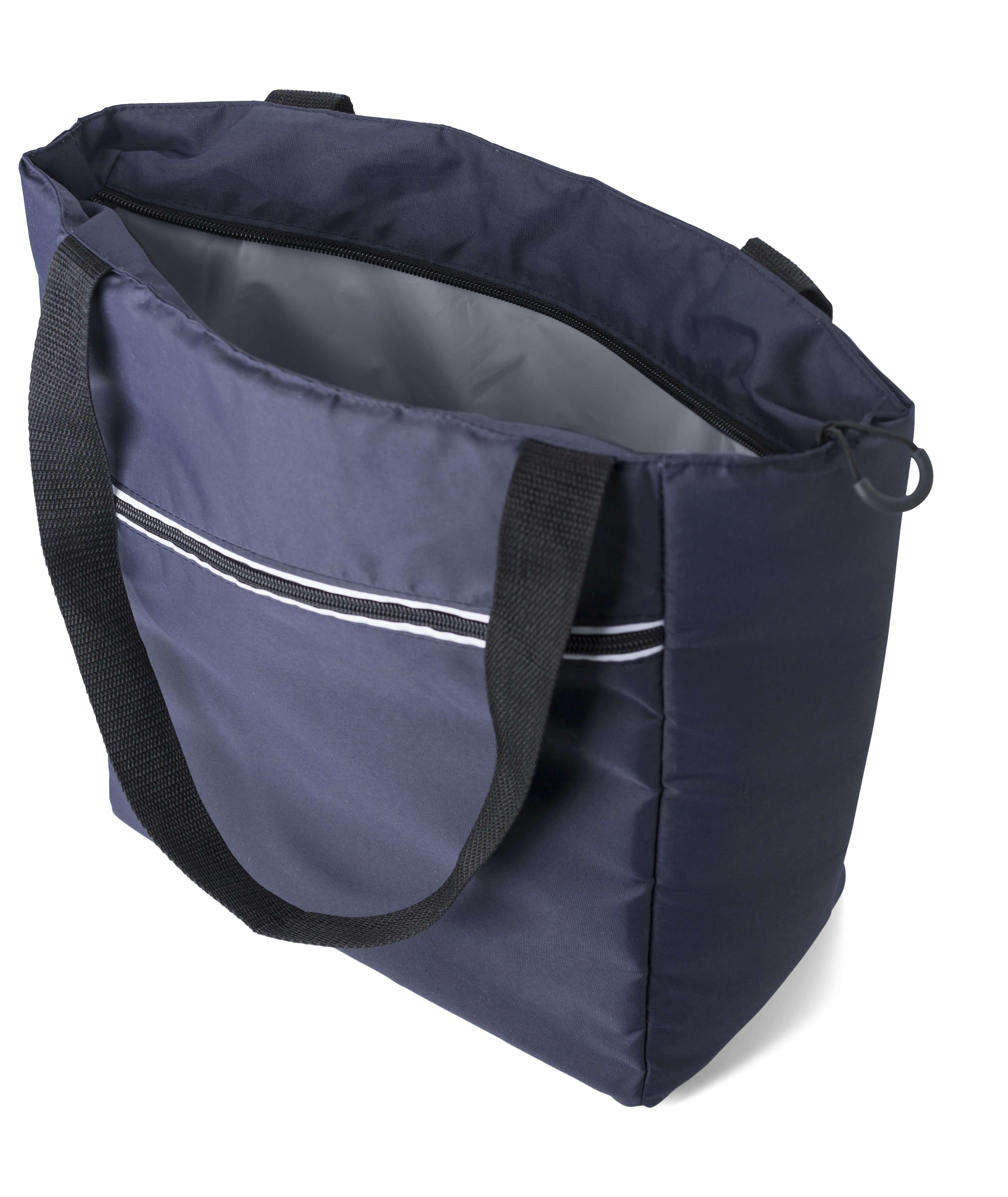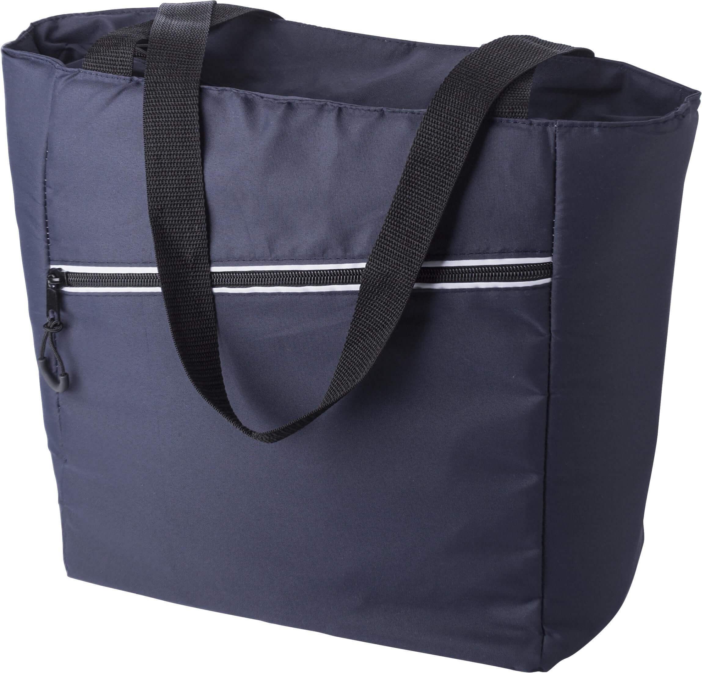 Saco térmico em pongee (75D) com revestimento interior em PEVA. Um grande compartimento principal, bolso frontal com fecho de correr e alças compridas.