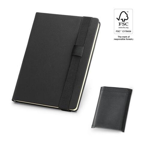 Bloco de notas A5 em PU, com capa rígida, suporte para esferográfica (não incluída), elástico e 280 páginas lisas cor de marfim