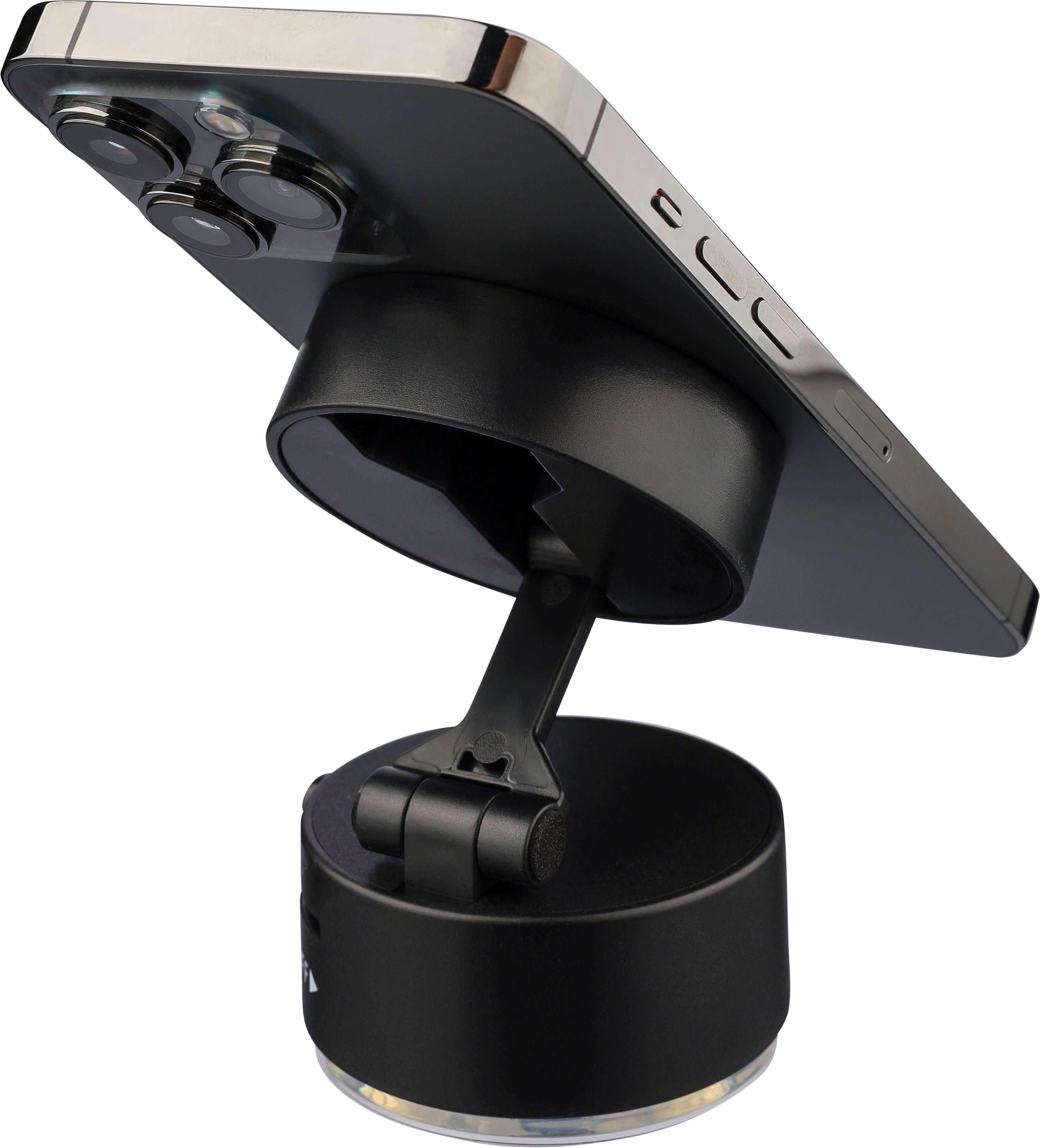 Suporte magnético reciclado ABS MagSafe para telemóvel com base de ventosa e função de bloqueio para uma fixação segura. Pode ser dobrado num tamanho compacto. Inclui um anel metálico para garantir a compatibilidade com todos os tipos de telemóveis. Logótipo reciclado posicionado entre o botão liga/desliga. Ideal para utilização em superfícies lisas, como no carro. Embalado individualmente numa caixa de cartão castanho.