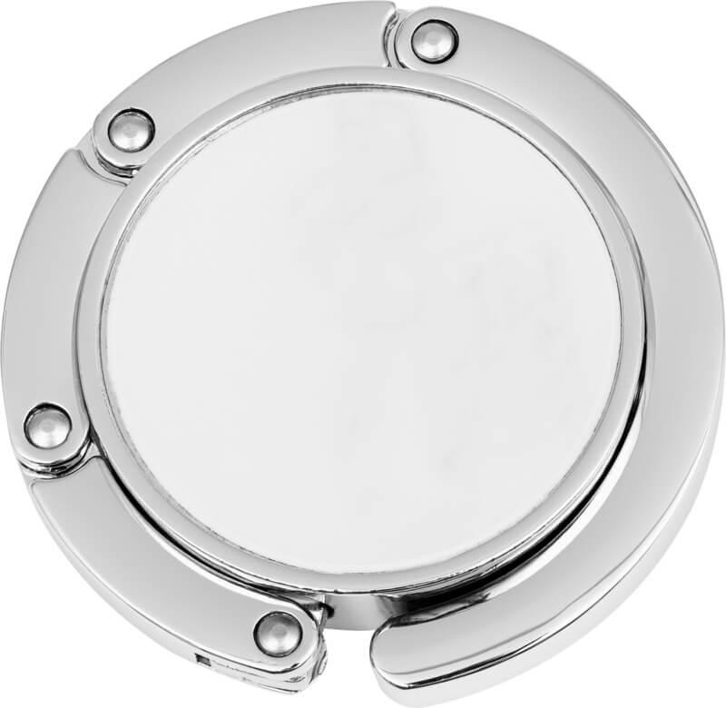 Suporte para mala que a mantém limpa e segura. O suporte pode ser pendurado na borda de uma superfície e suporta até 4,5 kg.