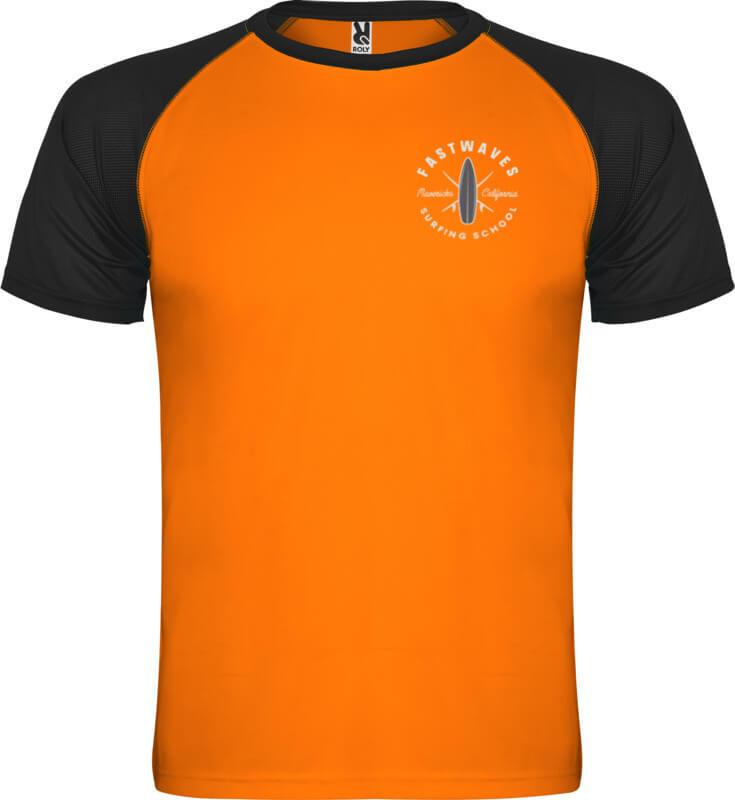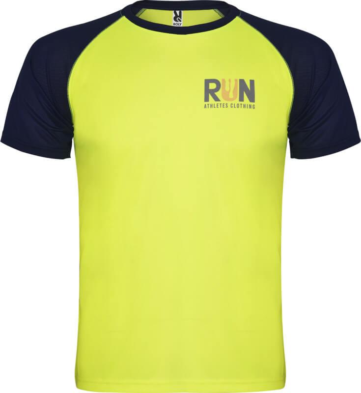 Tecido técnico e respirável. Mangas raglan em contraste. Gola redonda com costuras forradas e reforçadas em contraste. Etiqueta removível.