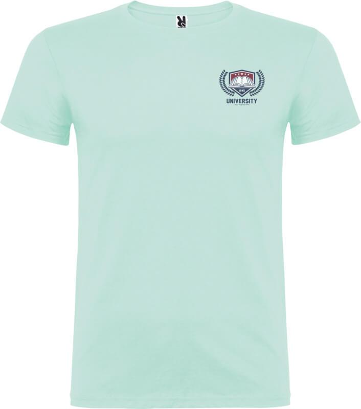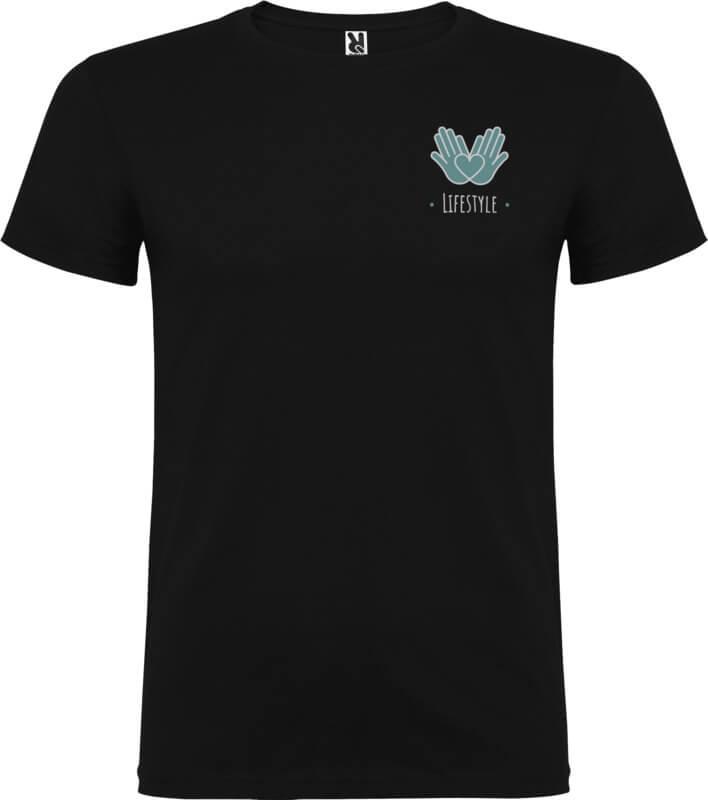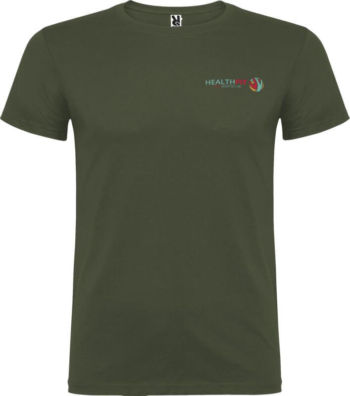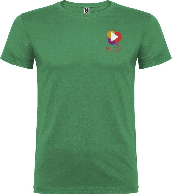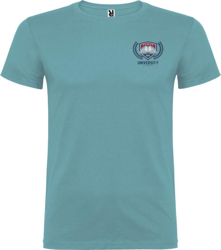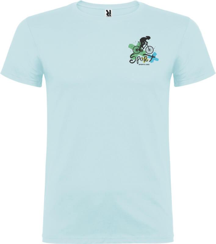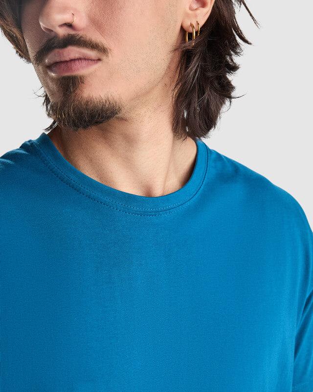 T-shirt de manga curta com gola redonda de dupla camada em elastano, fabricada em tecido tubular para adultos. Tapa costuras reforçada na gola. Etiqueta amovível. O modelo mede 190 cm e veste o tamanho L.