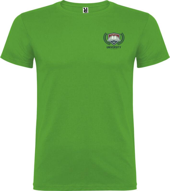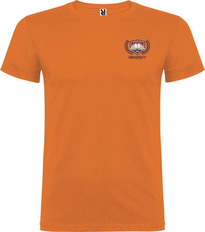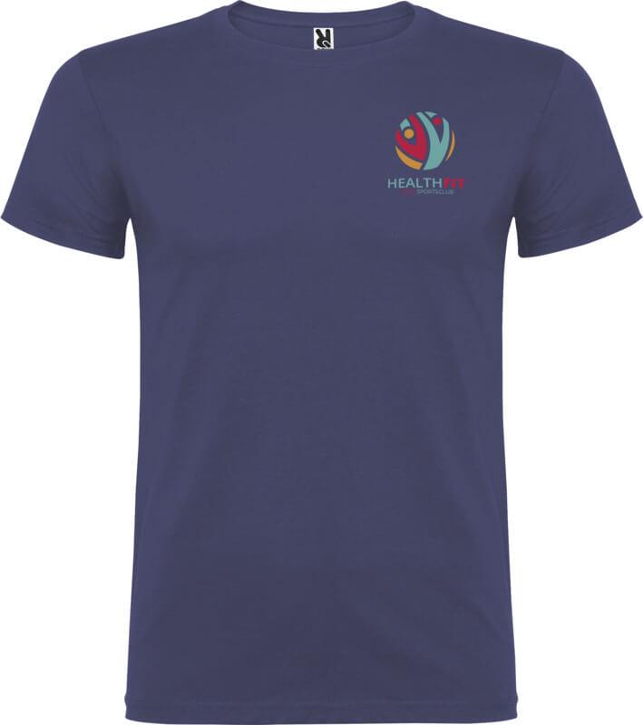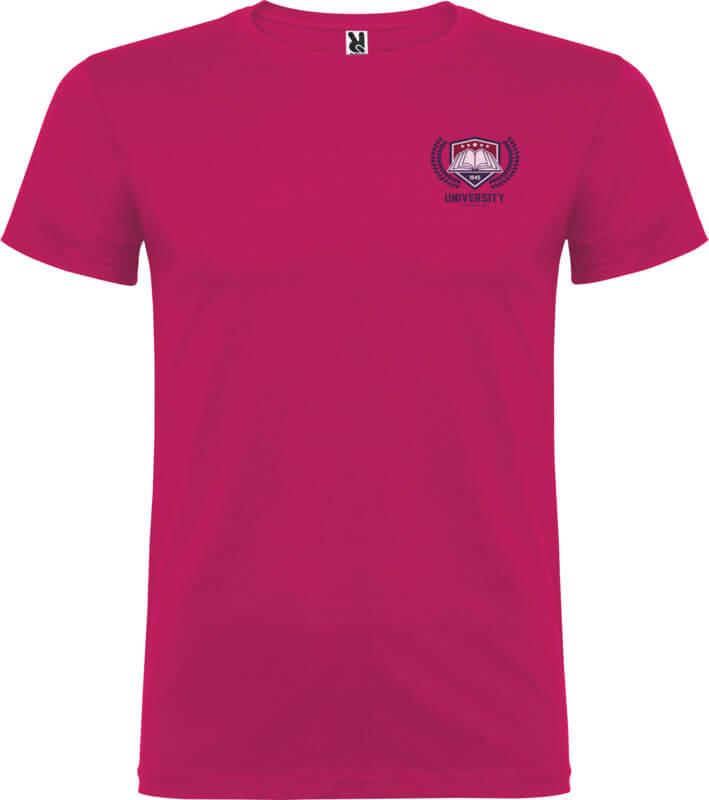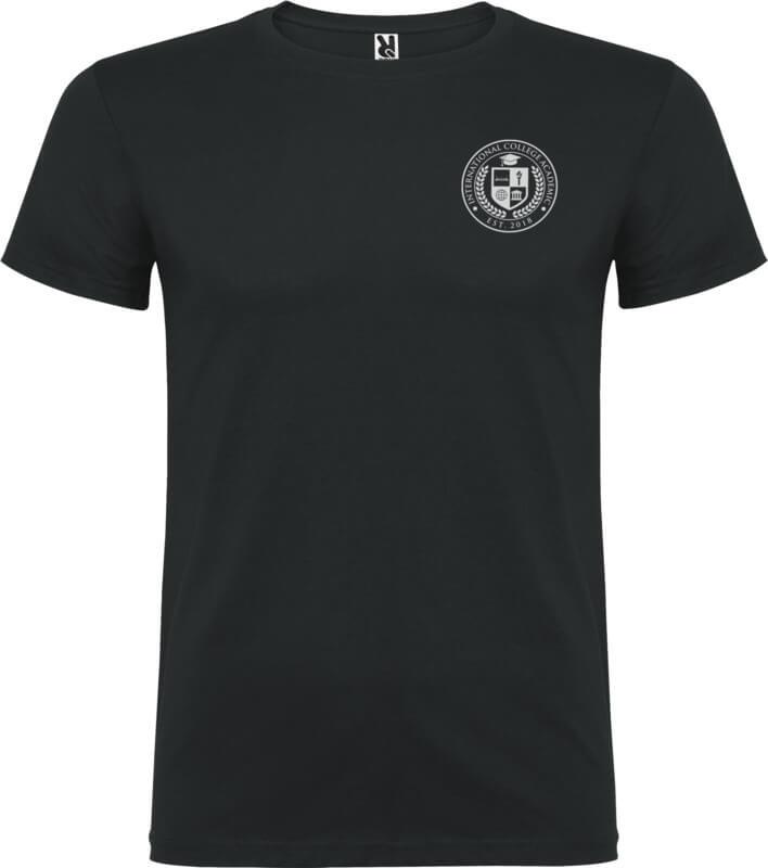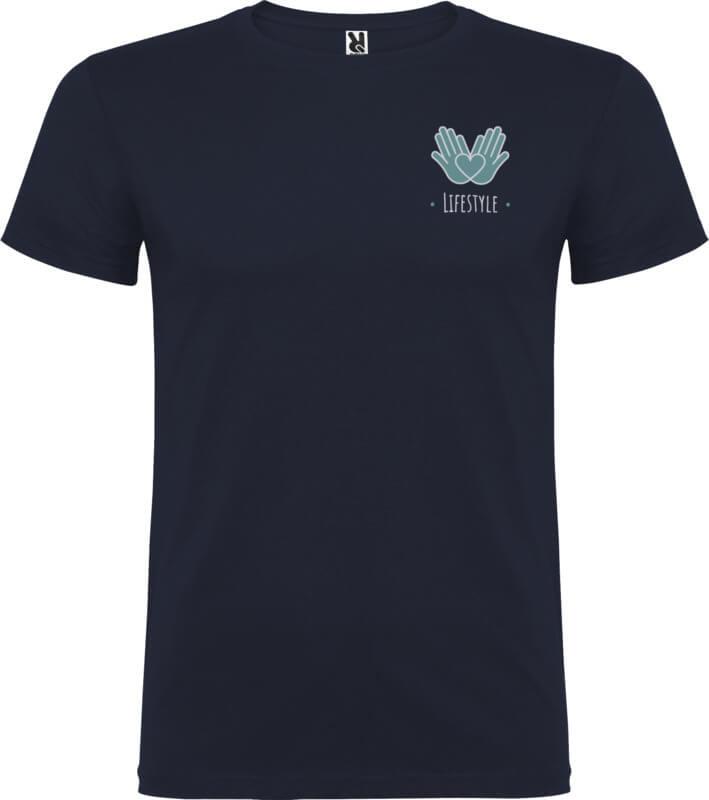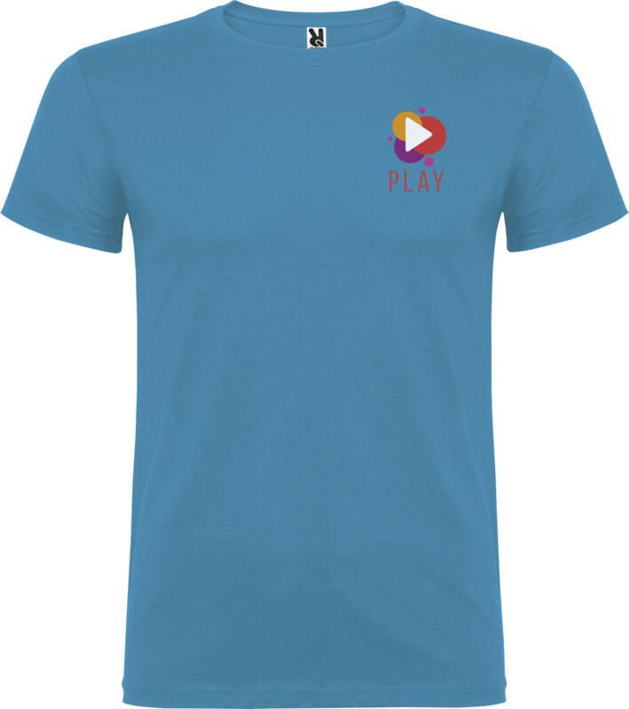 T-shirt de manga curta com gola redonda de dupla camada em elastano, fabricada em tecido tubular para adultos. Tapa costuras reforçada na gola. Etiqueta amovível. O modelo mede 190 cm e veste o tamanho L.