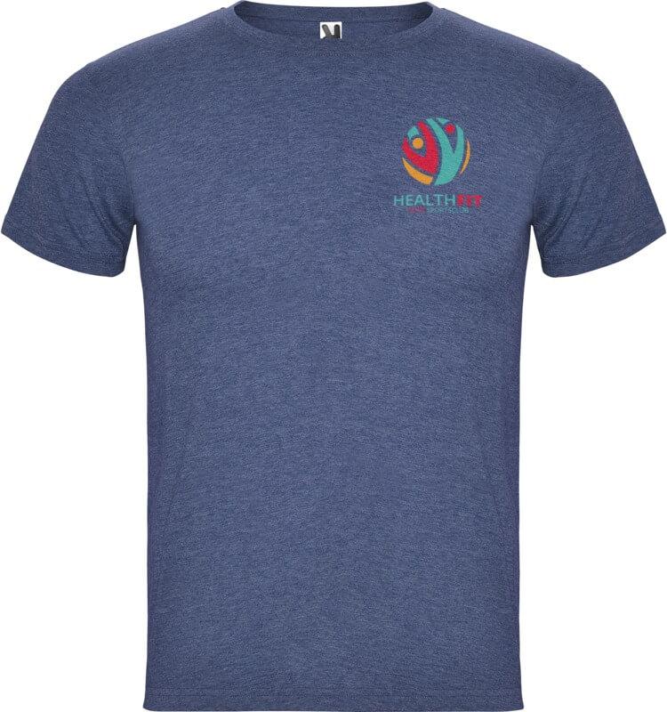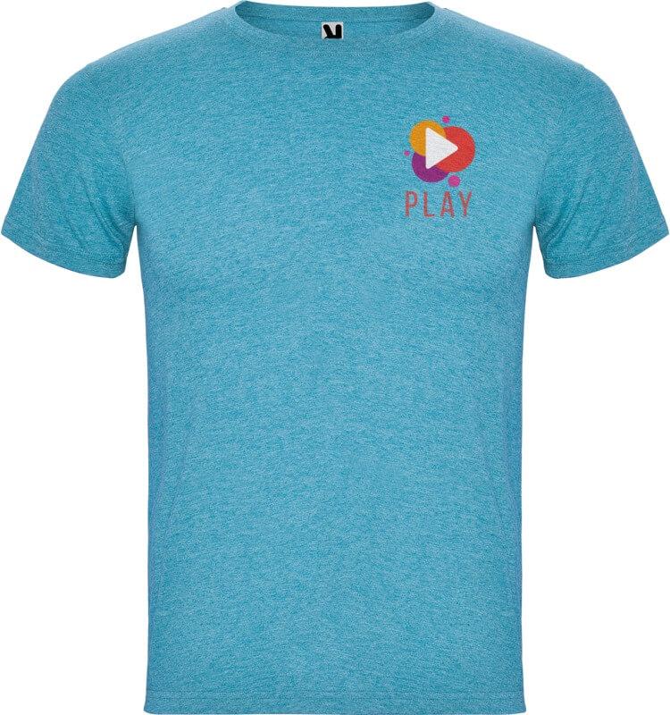 T-shirt de manga curta com efeito mesclado. Gola redonda canelada 1 x 1 com costuras internas forradas e reforçadas. Tecido tubular. Etiqueta removível.