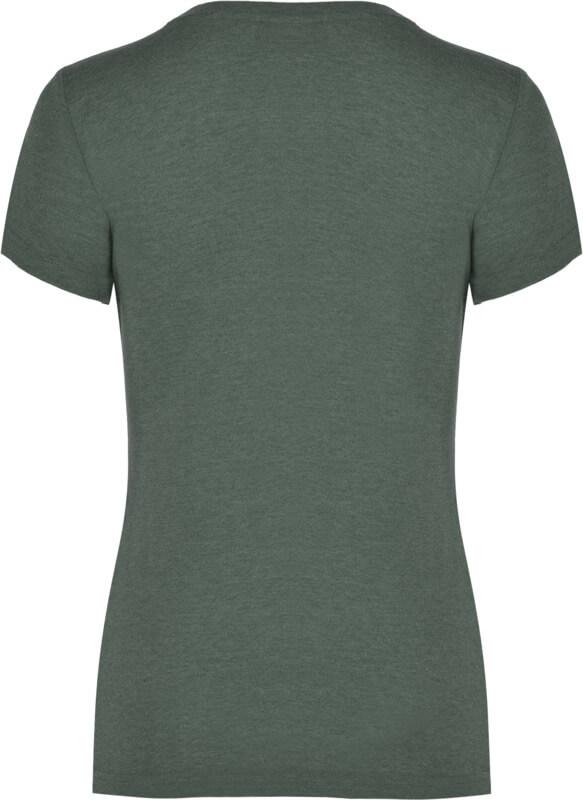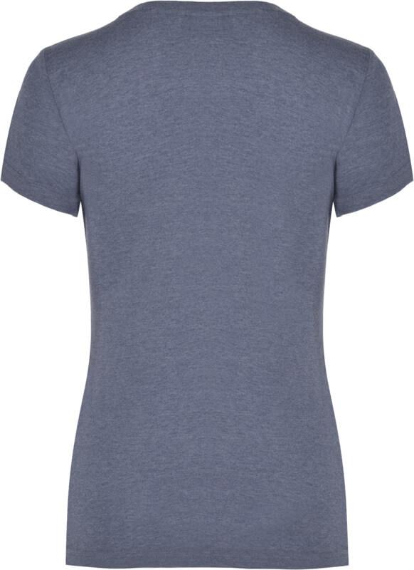 T-shirt de manga curta com efeito mesclado. Design justo. Gola redonda canelada 1 x 1 com costuras internas forradas e reforçadas. Tecido tubular. Etiqueta removível.