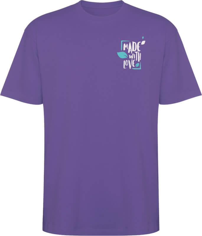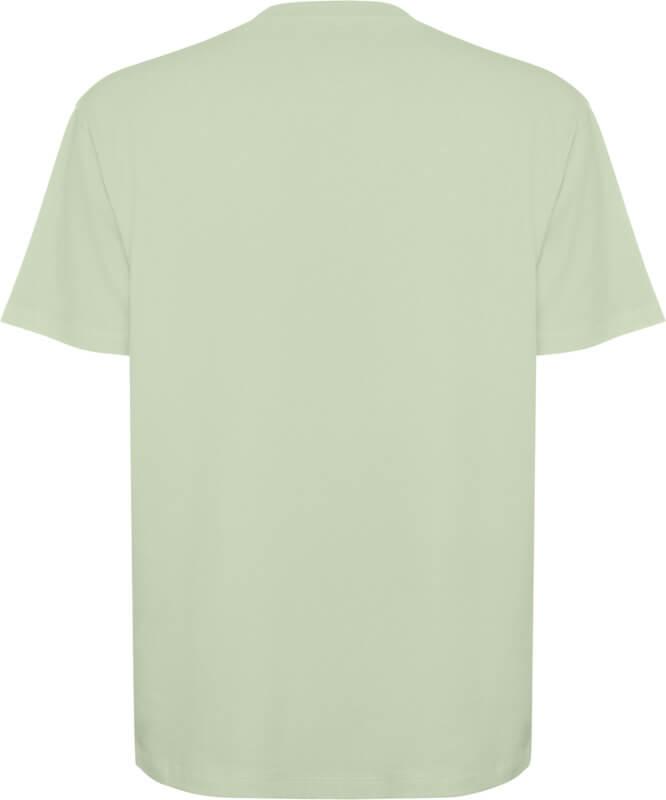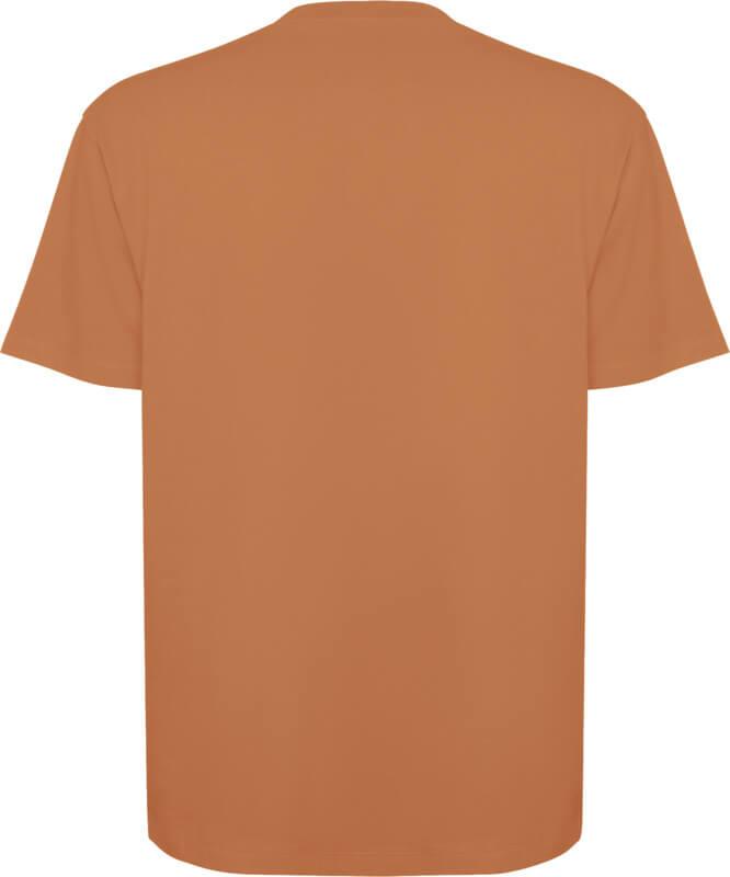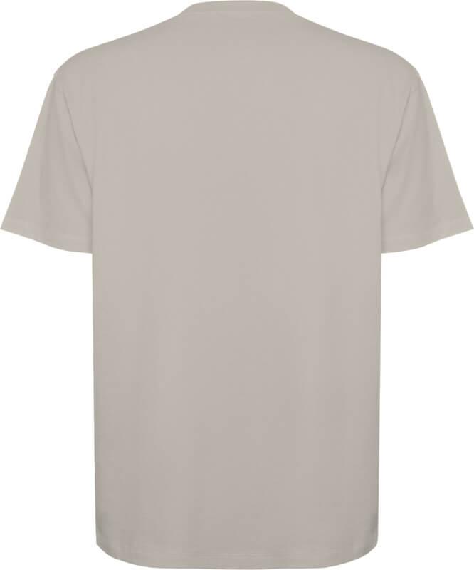 T-shirt de manga curta de corte largo. Gola redonda com acabamento em canelado 2×1 e tapa-costuras a combinar. Costuras laterais. Costura dupla larga nas mangas e bainha. Etiqueta removível.