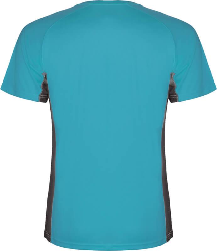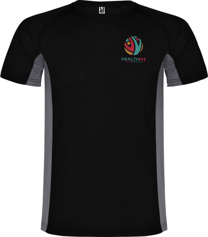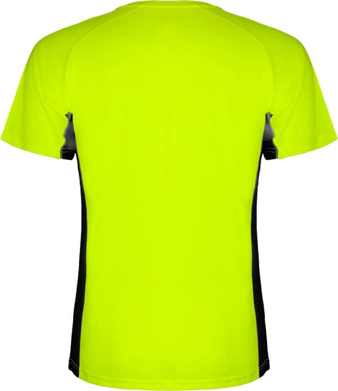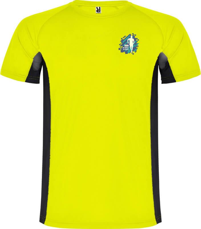 Tecido técnico e respirável. Uma combinação de dois tecidos de poliéster: Tecido principal em olho de perdiz, painéis laterais e manga interior em tecido microperfurado. Gola redonda com costuras internas reforçadas forradas. Etiqueta removível.
