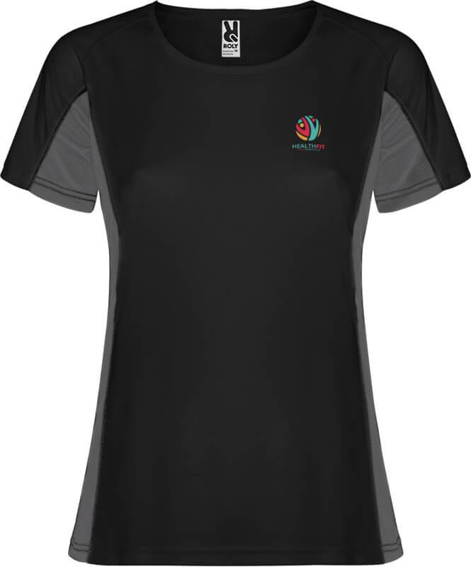 Tecido técnico e respirável. Uma combinação de dois tecidos de poliéster: Tecido principal em olho de perdiz, painéis laterais e manga interior em tecido microperfurado. Gola redonda com costuras internas reforçadas forradas. Etiqueta removível.