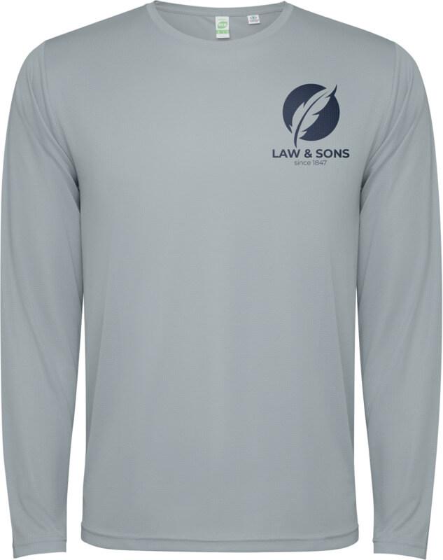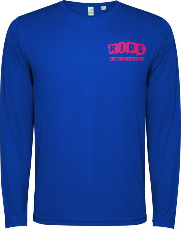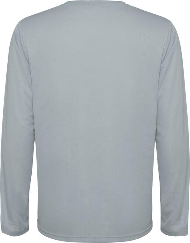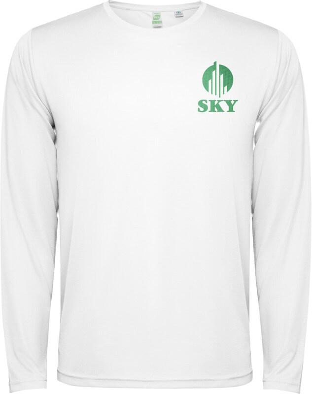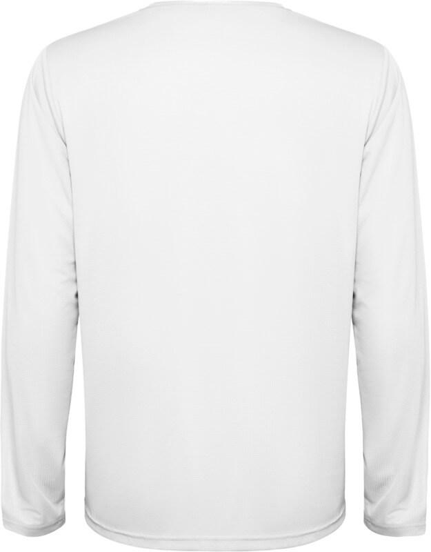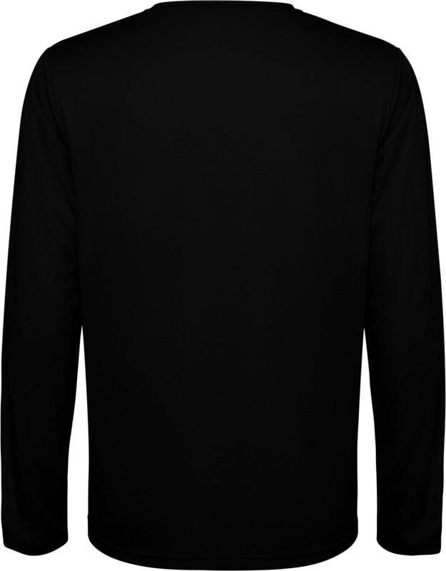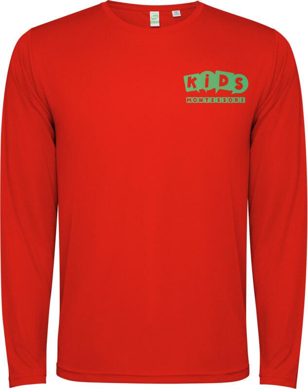 T-shirt técnica unisexo de manga comprida para criança. Gola com costuras a condizer. Bainha traseira ligeiramente mais comprida do que a frontal. Costuras laterais deslocadas para a frente.