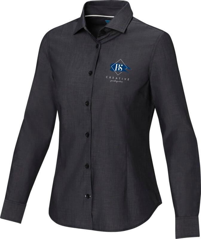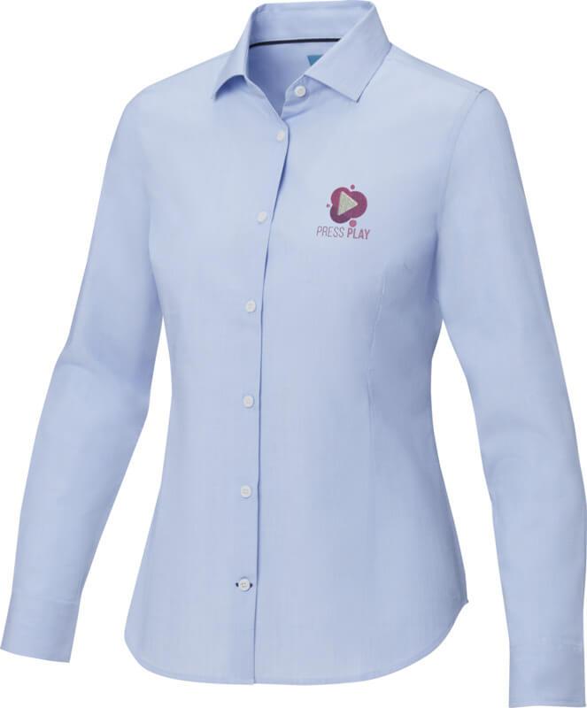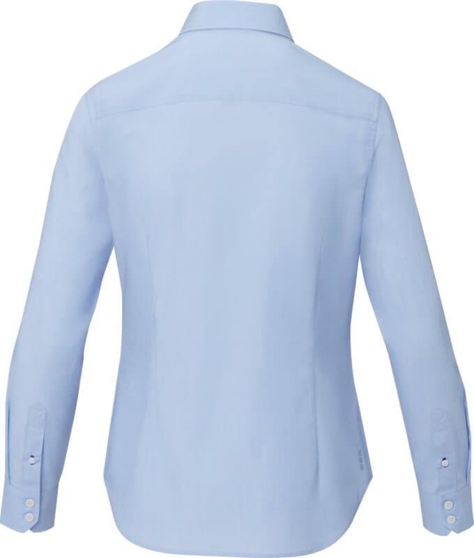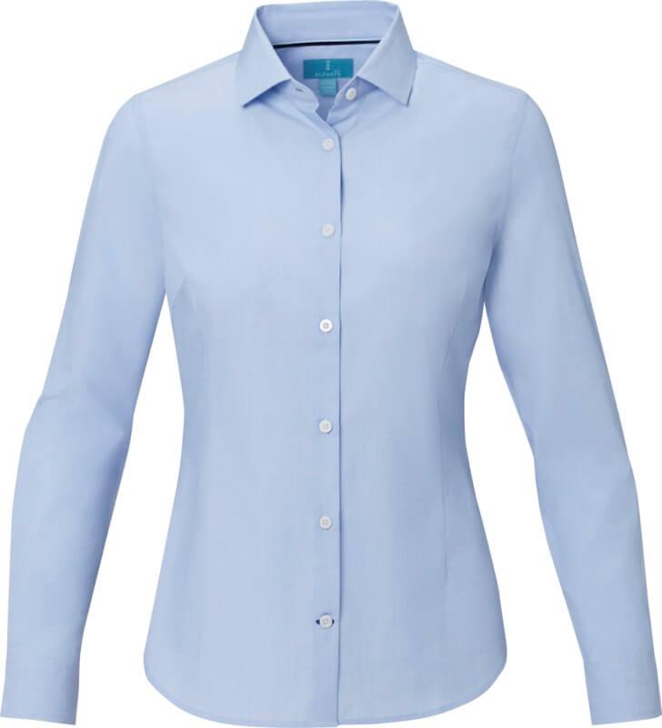 A camisa orgânica de manga comprida Cuprite para mulher – uma escolha sustentável e com estilo. Feita de popelina de algodão orgânico com, esta camisa combina um fabrico ético com um conforto excecional. Apresenta um colarinho semi-aberto que oferece um visual mais descontraído e versátil. A costura de cor contrastante na carcela da manga e na carcela da casa de botão inferior confere um toque subtil de estilo. Esta camisa foi concebida com uma forma ajustada para um look feminino.