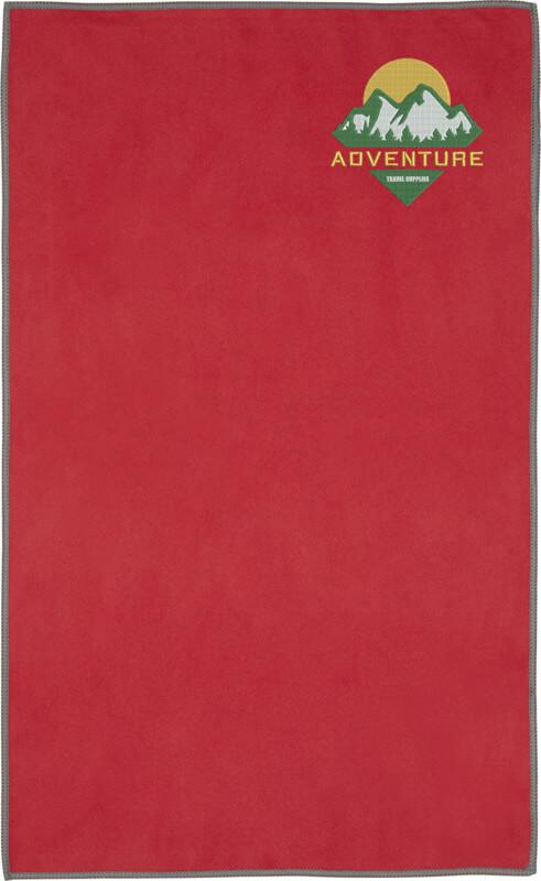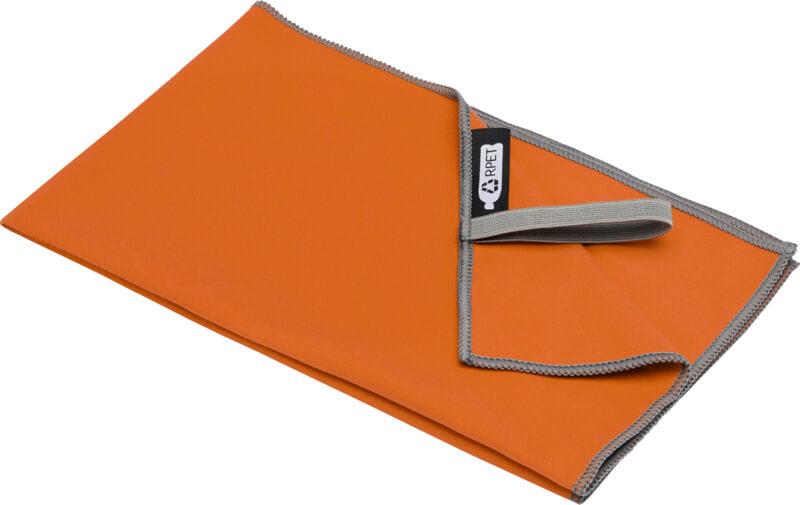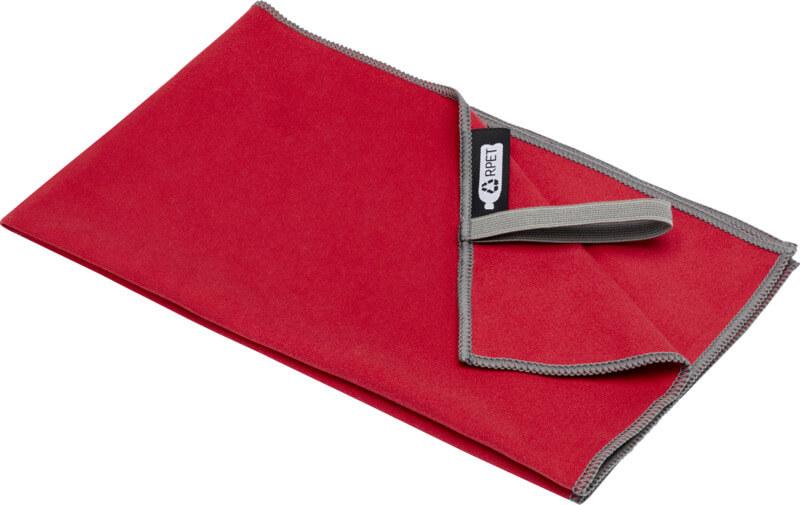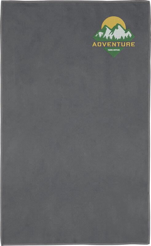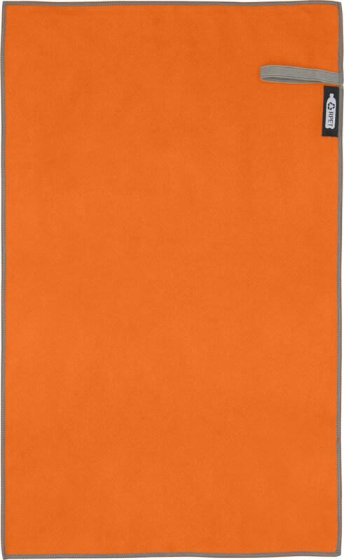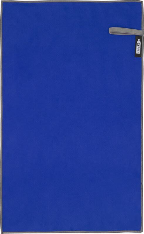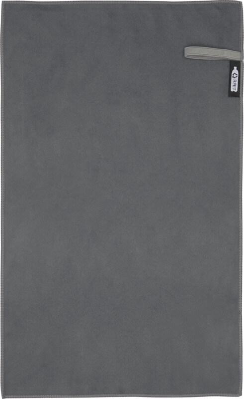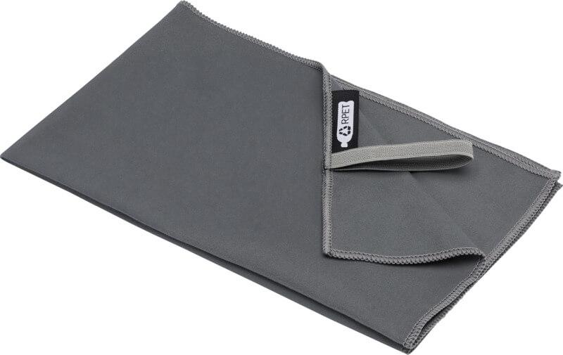 A toalha desportiva “Pieter” absorve muito bem, é leve, seca rapidamente e o tecido é durável e extremamente macio. Quando a toalha é dobrada e presa com o elástico ela fica reduzida a um tamanho pequeno, tornando-a adequada para levar para o ginásio, piscina, ou para acampar ou viajar de mochila às costas. A toalha tem um tamanho de 50 x 30 cm e é feita de 90 % poliéster reciclado GRS e 10 % nylon, podendo ser lavada na máquina de lavar a 40 °C. Entregue com bolsa de armazenamento (15,5 x 10 cm) feita de plástico PET reciclado, que oferece uma ótima área para a impressão de um logótipo.