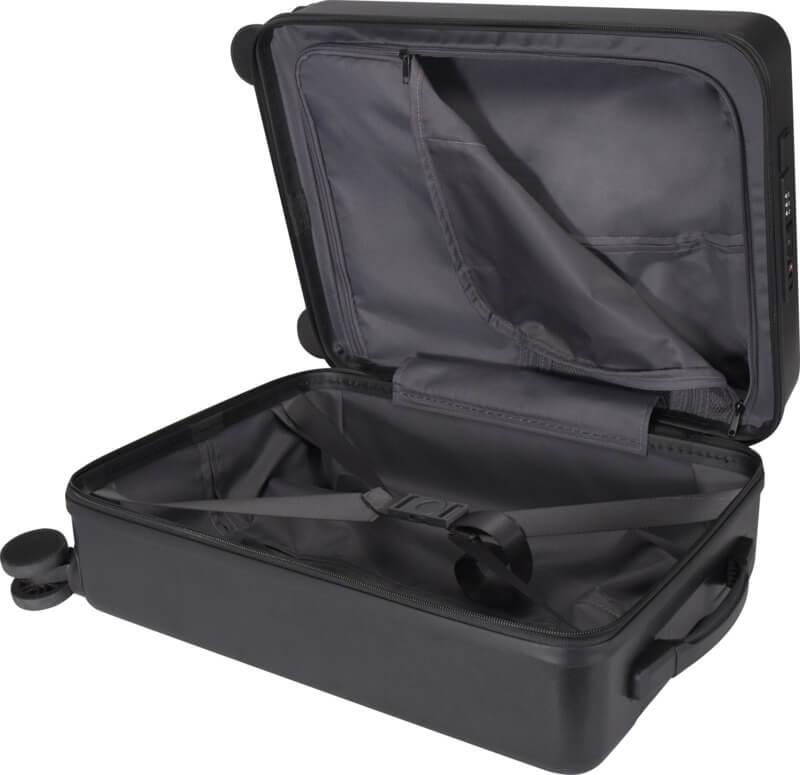 O trolley de cabine “Rover Pro” de 20 polegadas destaca-se com o seu compartimento frontal aberto para computador portátil de 20 polegadas e porta de carregamento USB integrada, tornando-o um companheiro de viagem ideal para viagens de negócios e lazer. Este trolley é construído com plástico reciclado certificado GRS resistente a impactos e forro RPET de qualidade, possui um compartimento com abertura frontal para computador portátil com bolsos organizacionais para acessórios eletrónicos e um fecho de combinação TSA para os compartimentos principal e de abertura frontal. O trolley também conta com duas rodas giratórias de 360 graus para uma utilização fácil em aeroportos. Pode ser levado como bagagem de mão na maioria das companhias aéreas convencionais.