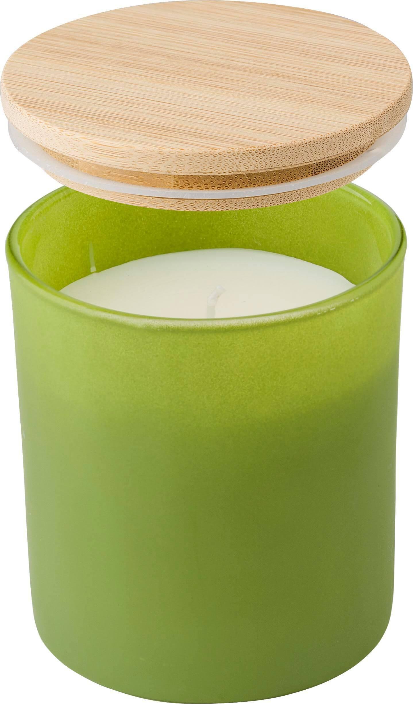 Vela de vidro com cera vegetal e uma tampa de bambu. A vela contém principalmente cera vegetal (cera de carnaúba) e tem uma duração de combustão de cerca de 33 horas. Quatro aromas consoante a cor do vidro: canela (vermelho), baunilha (branco), sândalo (preto) e jasmim (verde). Apresentado individualmente num tubo branco.